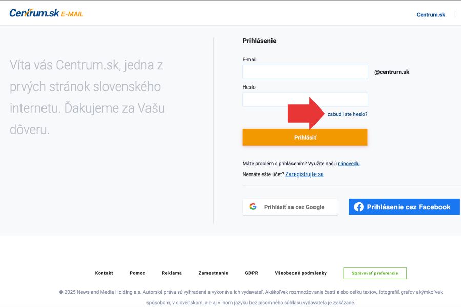 - Miesto prihlásenia kliknite na Zabudli ste heslo?